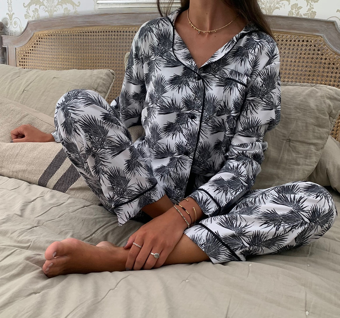 Pijama de viscosa, con manga larga y pantalón.