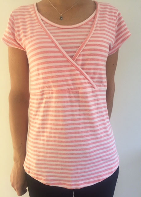 Cómoda polera de lactancia especial con peto interior para levantar y amamantar.
